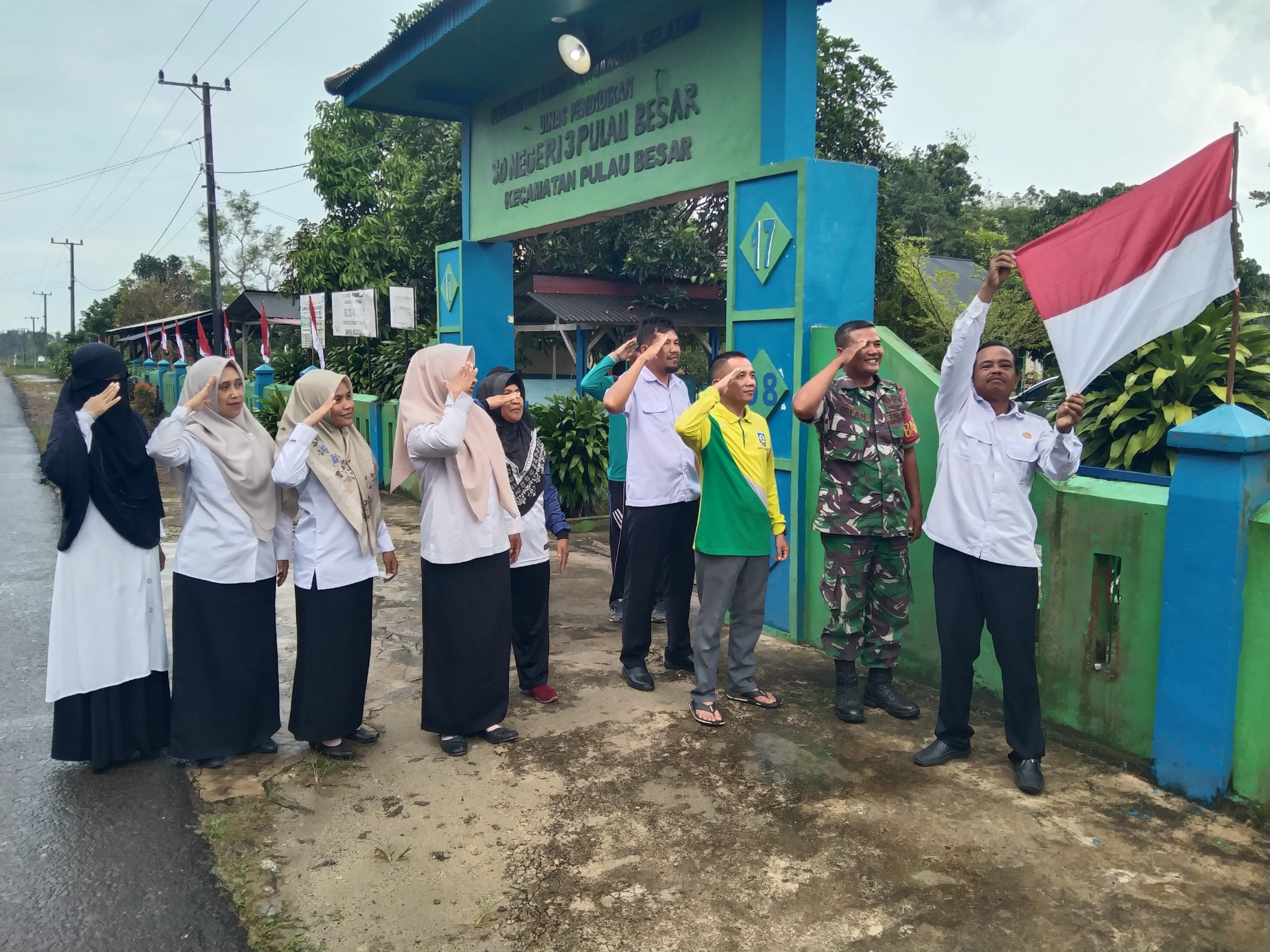 Kegiatan tersebut disambut antusias oleh pihak sekolah, para guru, serta siswa-siswi yang turut menyaksikan proses pengibaran bendera sebagai simbol cinta tanah air.