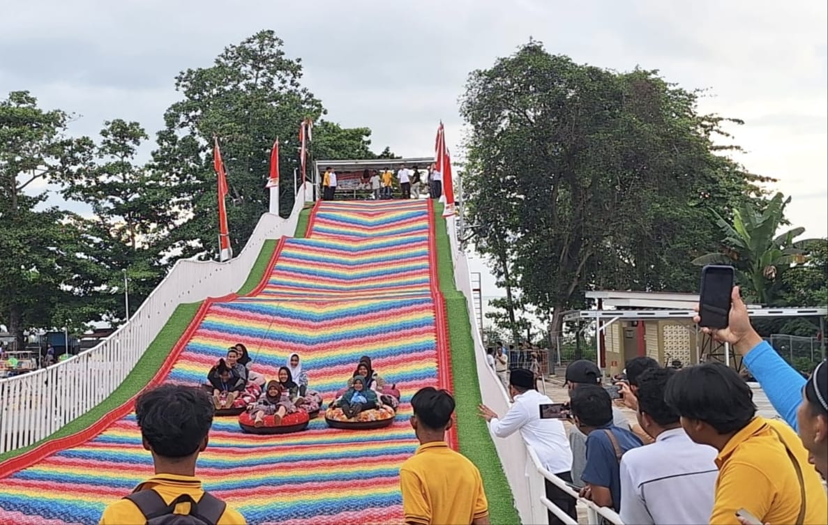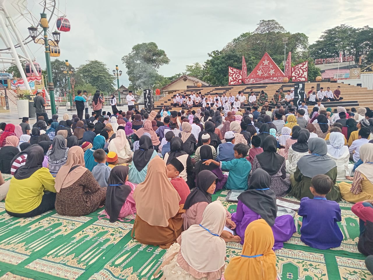 Acara peringatan Maulid Nabi kali ini tidak hanya diisi dengan tausiyah dan doa bersama, tetapi juga dengan suasana penuh kegembiraan. Sebagai bentuk kebersamaan, Bupati Riza mengajak seluruh anak-anak yatim menikmati wahana permainan yang tersedia di kawasan Himpang Lime Habang, mulai dari bianglala, rainbow slide, hingga gokar.
