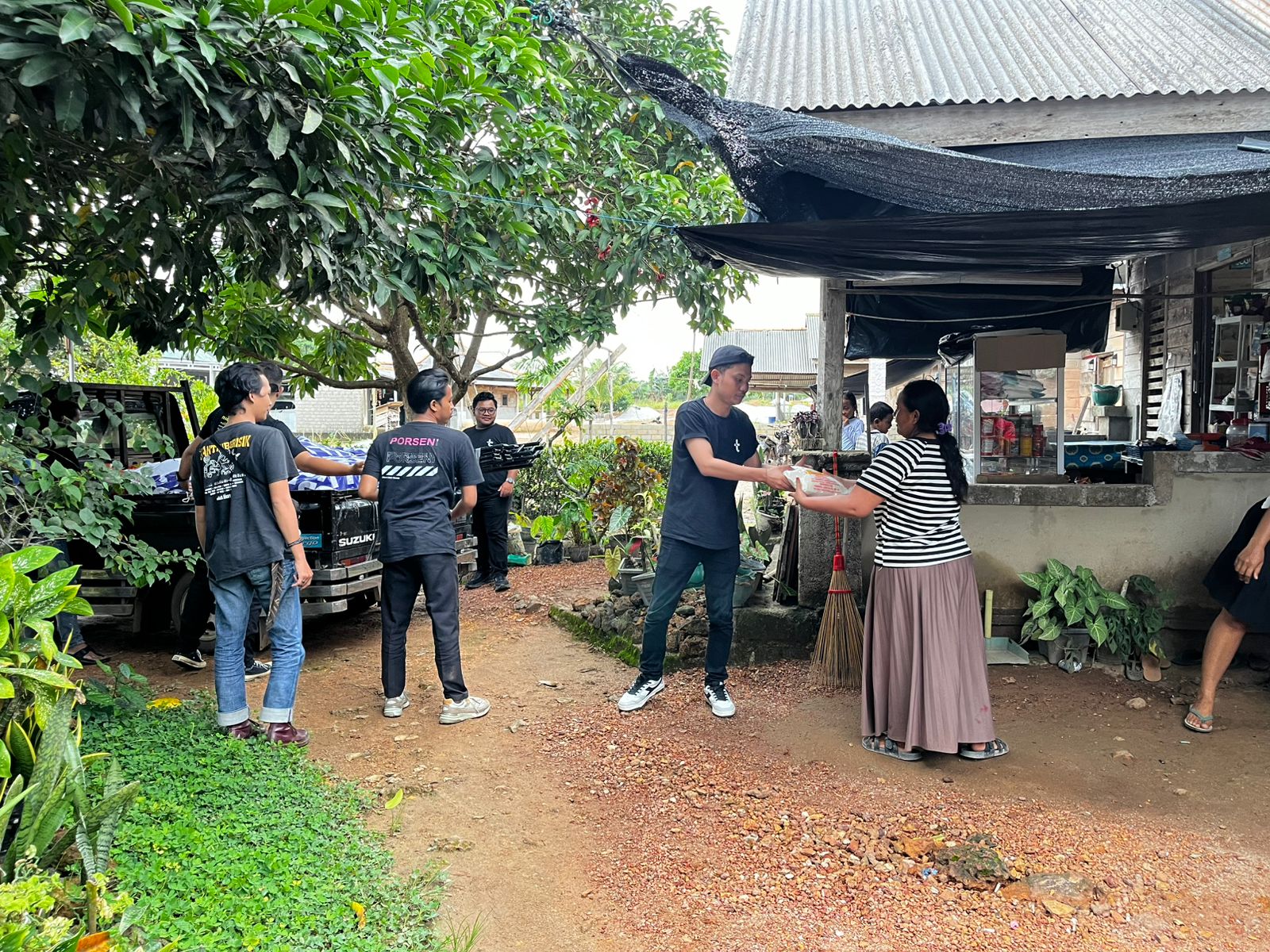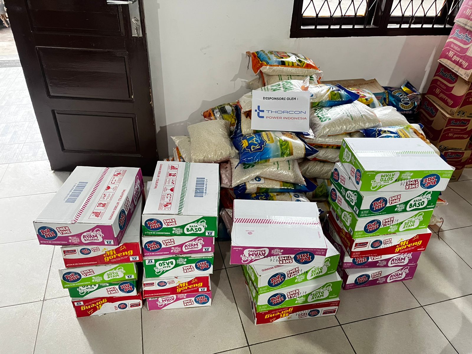 Bantuan yang diberikan berupa paket kebutuhan pokok, antara lain beras, mi instan, serta bahan konsumsi harian seperti kopi dan gula.