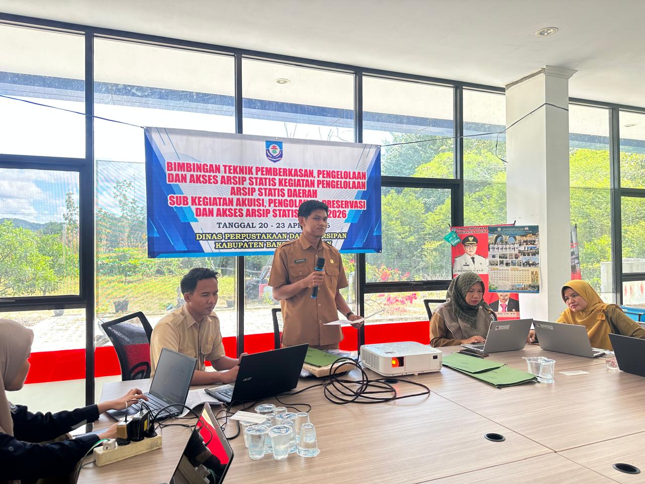 Kegiatan ini menjadi bagian dari program pembinaan, pengelolaan, dan pengawasan kearsipan yang bertujuan untuk meningkatkan kapasitas aparatur dalam mengelola arsip secara profesional dan sesuai standar nasional. Bimtek dijadwalkan berlangsung selama empat hari, mulai Senin, 20 April hingga Kamis, 23 April 2026.