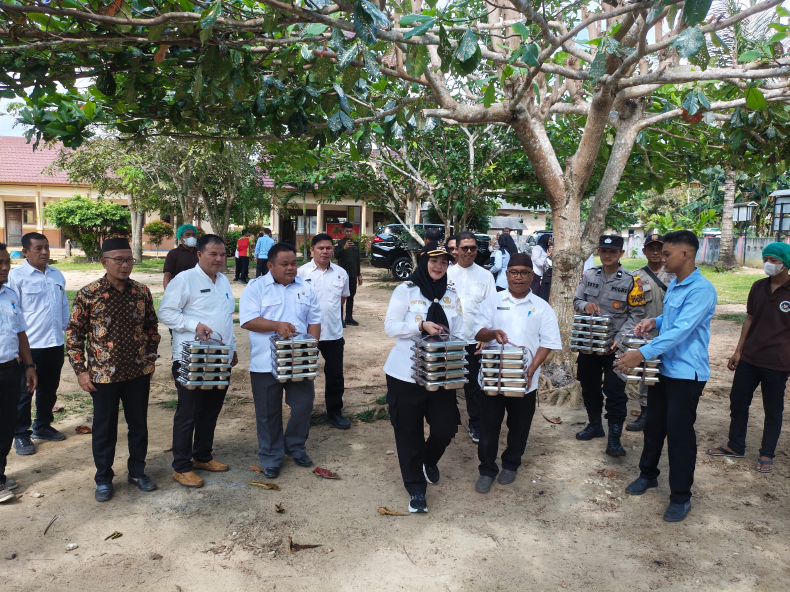 Sebelum meninjau ke sekolah, Wabup terlebih dahulu mengunjungi Satuan Pelayanan Pemenuhan Gizi (SPPG) di Desa Tukak. Di lokasi ini, ia melihat langsung proses pengolahan makanan, mulai dari persiapan bahan, proses memasak, hingga pengemasan untuk didistribusikan kepada para penerima.