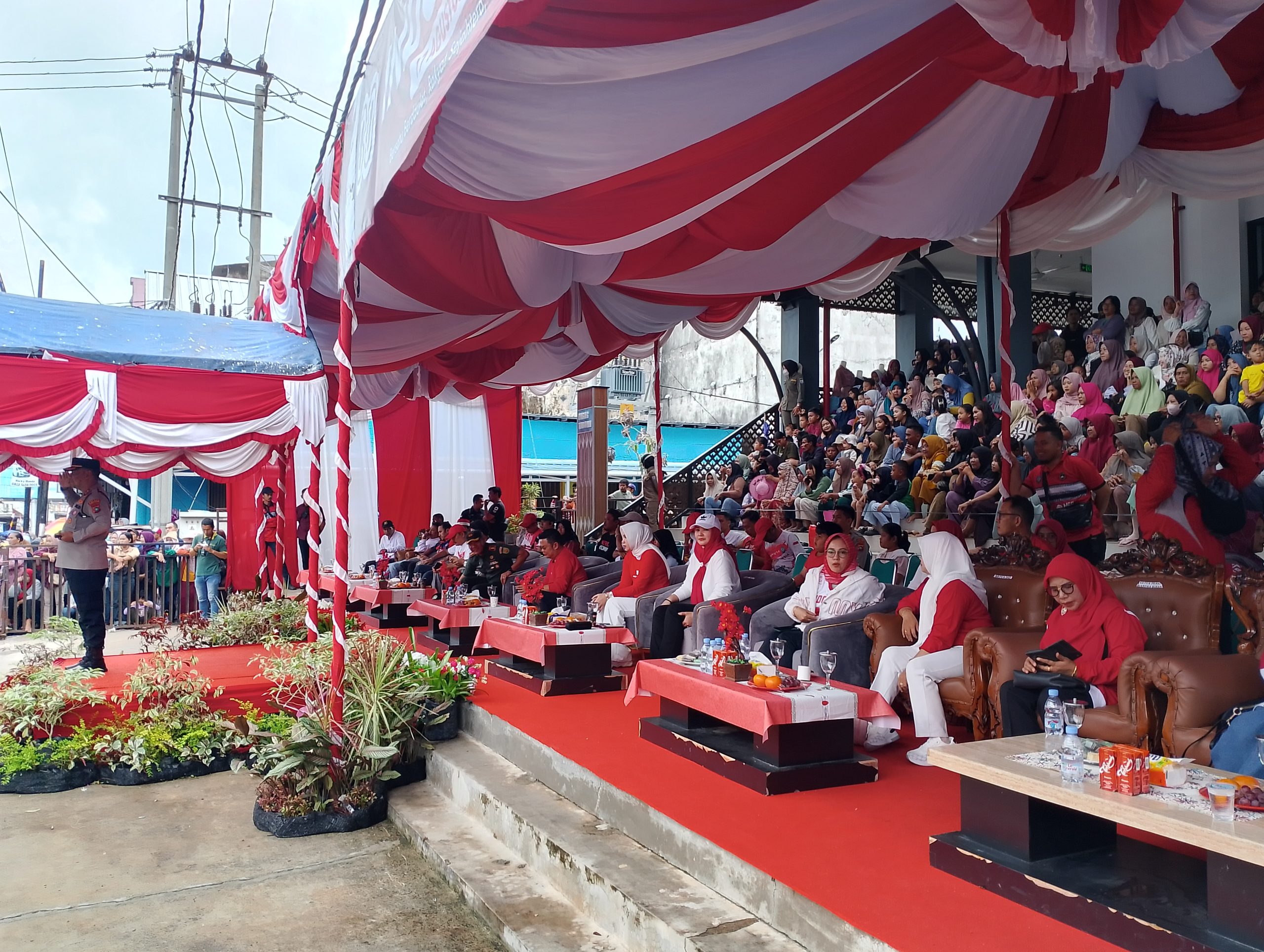 Acara ini juga dihadiri Bupati Bangka Selatan, H. Riza Herdavid, S.T., M.Tr.IP., bersama istri, Hj. Elizia Riza Herdavid, S.E., Wakil Bupati Bangka Selatan, Hj. Debby Vita Dewi, S.E., M.M., Forkopimda Kabupaten Bangka Selatan, Pj. Sekretaris Daerah, kepala OPD, serta tamu undangan di panggung kehormatan.