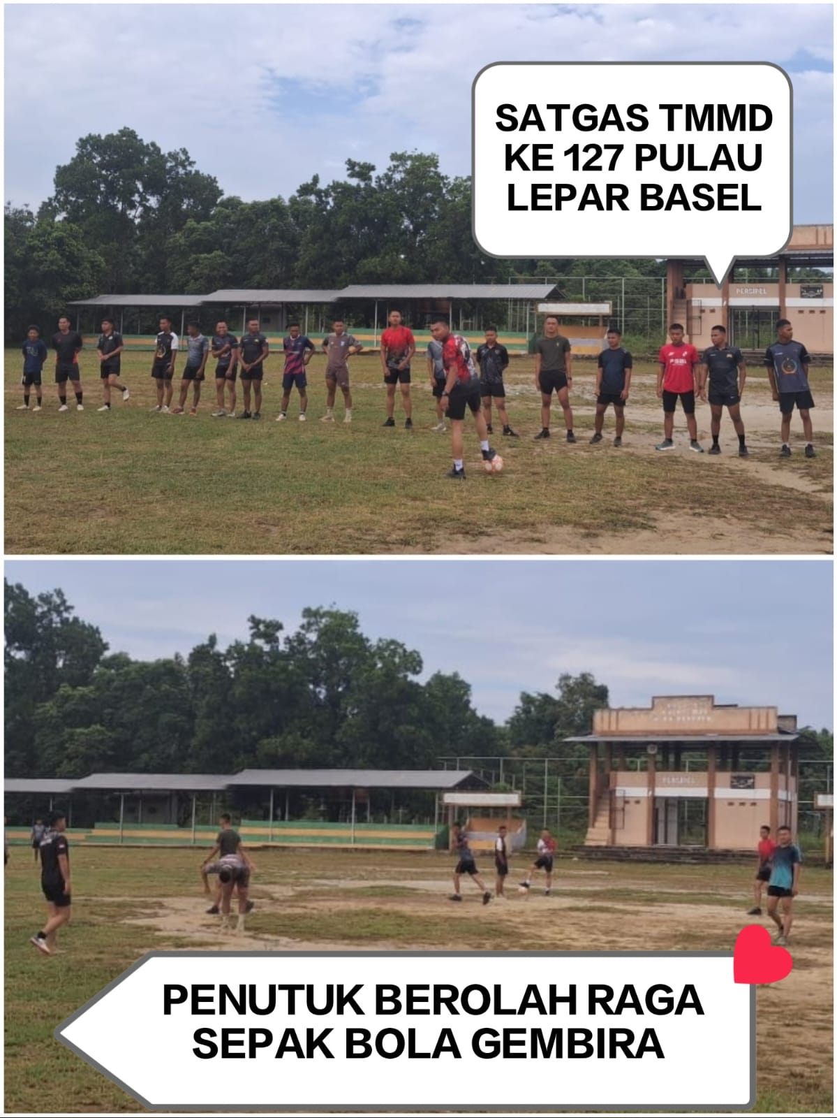 Komandan Satgas TMMD Ke-127 Kodim 0432/Bangka Selatan, Letkol Inf Agus Wicaksono, melalui Komandan Kompi SSK Satgas TMMD Kapten Inf Tri Wahyudi, mengatakan bahwa kegiatan olahraga bersama merupakan bagian dari komunikasi sosial (komsos) nonfisik yang sangat efektif dalam membangun kedekatan emosional dengan warga.