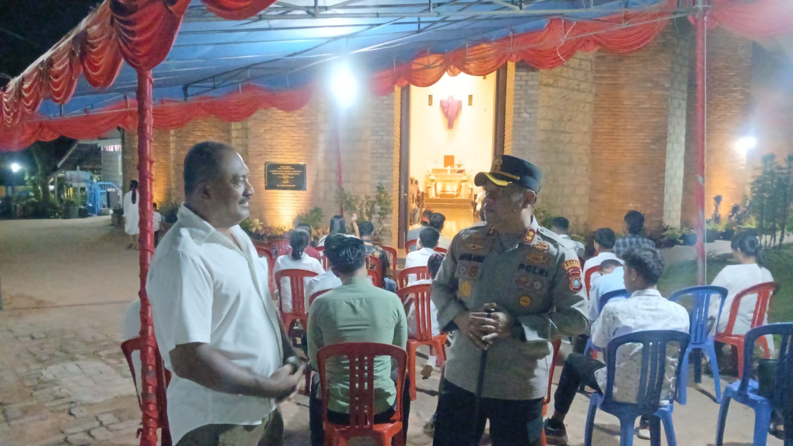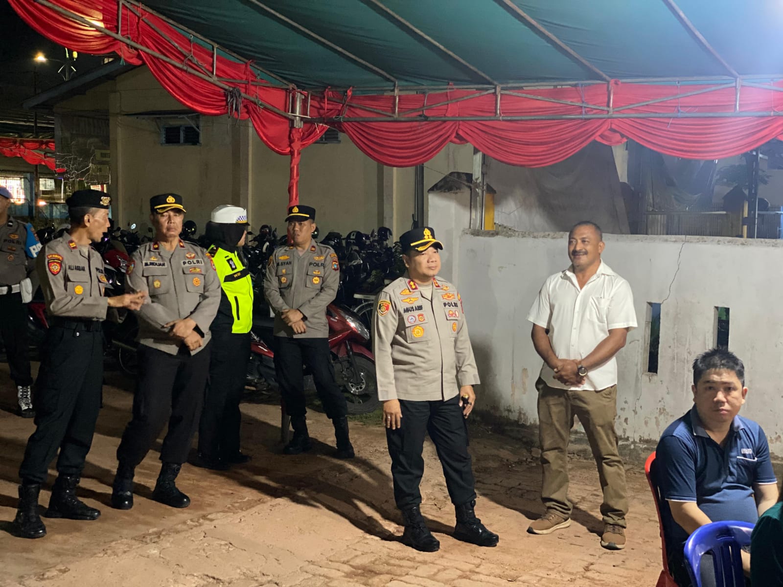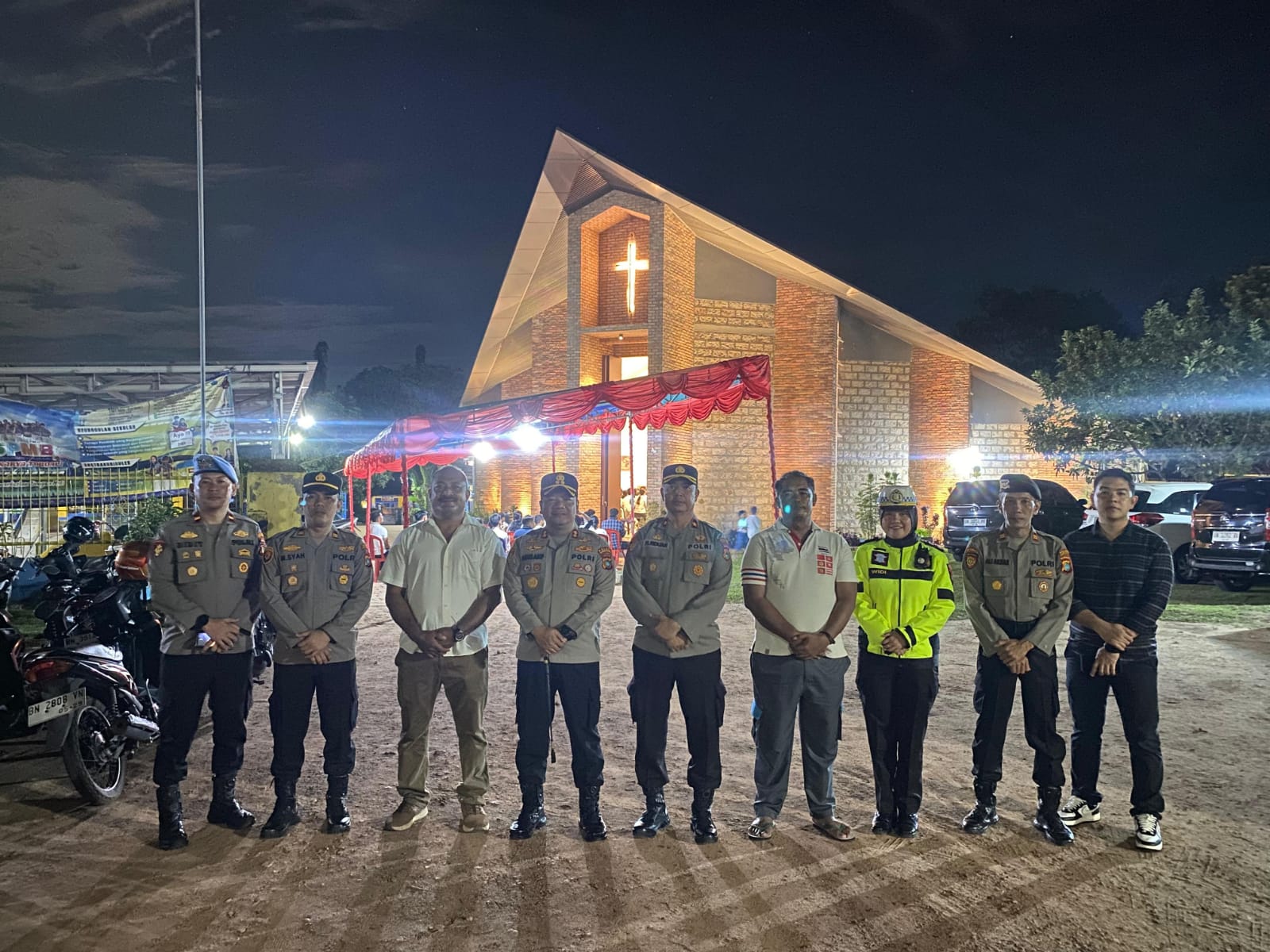 Sejak sebelum ibadah dimulai, personel kepolisian telah disiagakan di sejumlah titik guna memastikan keamanan dan ketertiban selama pelaksanaan ibadah berlangsung.