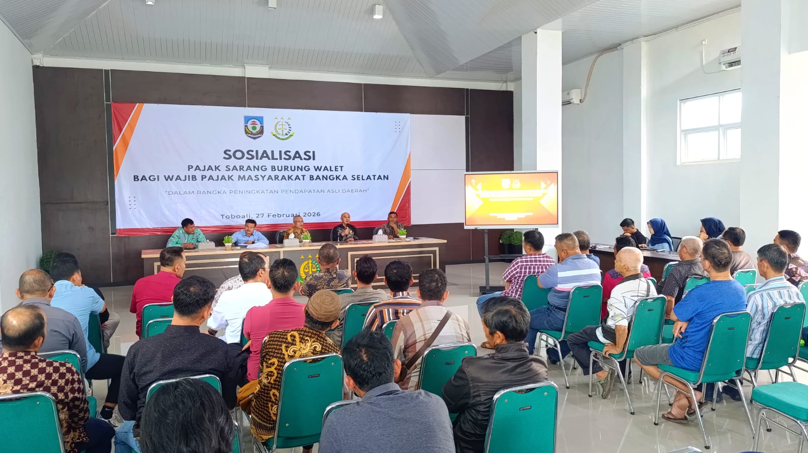 Toboali, Radarnyamuk.com , — Pemerintah Kabupaten Bangka Selatan bersama Kejaksaan Negeri Bangka Selatan menggelar sosialisasi Pajak Sarang Burung Walet kepada para wajib pajak di Aula Pertemuan Kejari Bangka Selatan, Jumat (27/2/2026).