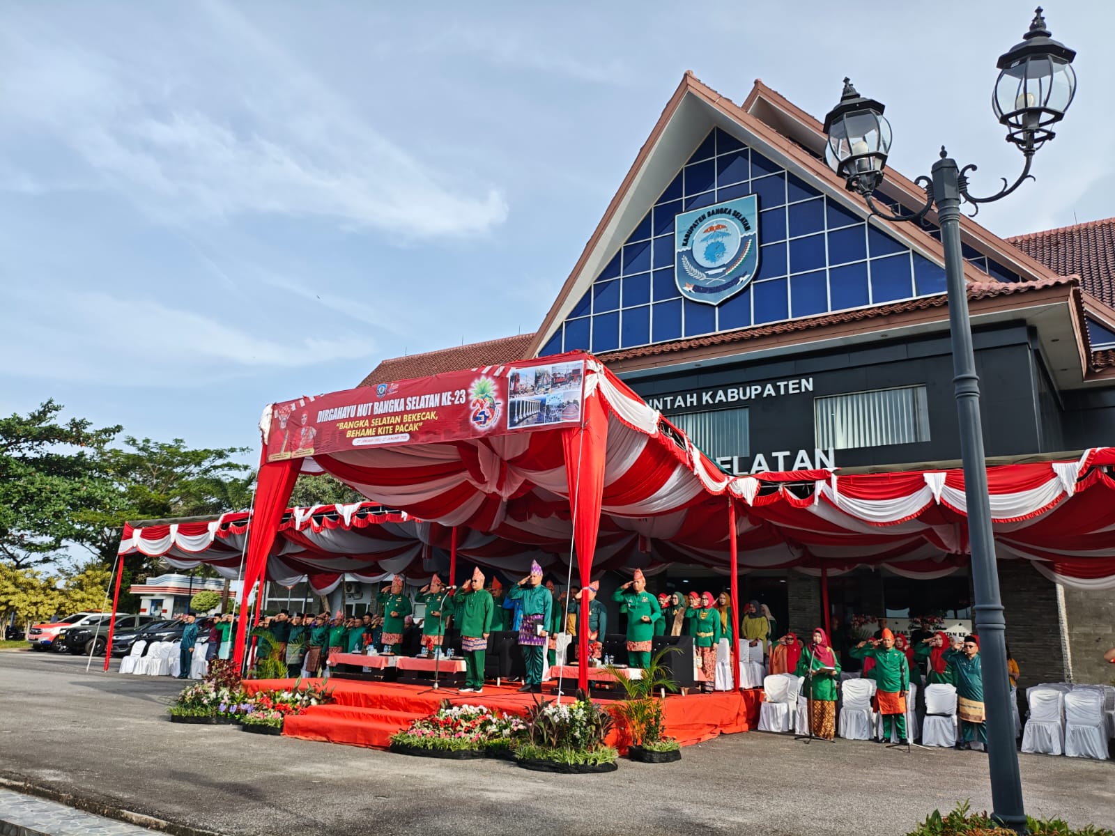 Upacara peringatan Hari Jadi ke-23 Bangka Selatan ini diikuti unsur Forkopimda, Sekretaris Daerah, kepala OPD, ASN, TNI/Polri, tokoh agama, tokoh masyarakat, organisasi politik, serta tamu undangan lainnya.