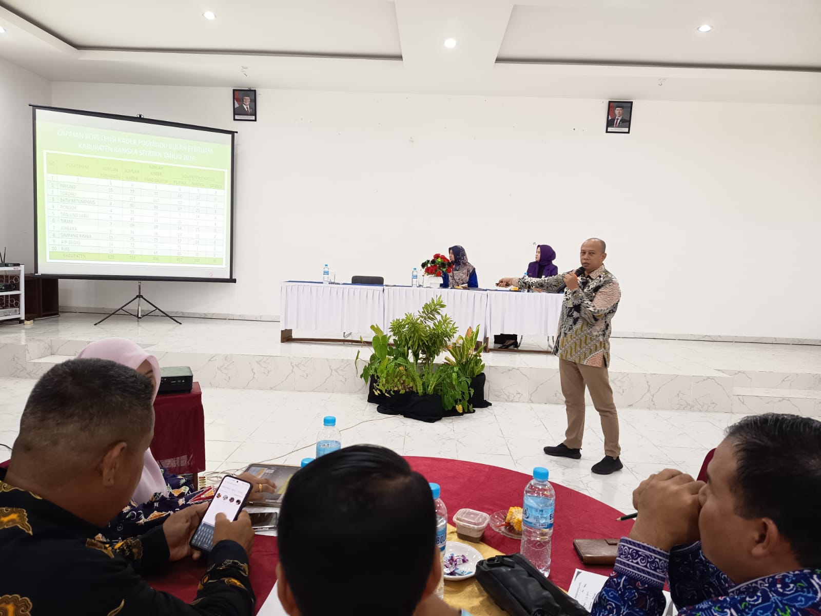Kegiatan tersebut dihadiri oleh berbagai unsur lintas sektor, di antaranya kepala organisasi perangkat daerah (OPD), camat, kepala puskesmas, serta para kader Posyandu dari seluruh wilayah Kabupaten Bangka Selatan. Turut hadir Ketua TP PKK Kabupaten Bangka Selatan, Hj. Elizia Riza Herdavid, yang memberikan dukungan penuh terhadap penguatan peran Posyandu sebagai garda terdepan pelayanan kesehatan di tingkat desa.