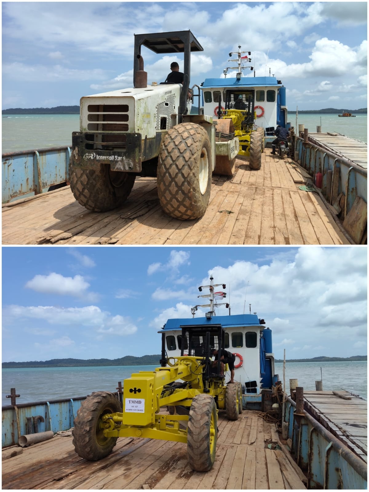 Material yang dikirimkan tidaklah sedikit. Alat berat berupa excavator (PC), vibro roller, dan grader turut diseberangkan untuk menunjang pengerjaan pembukaan badan jalan. Selain itu, berbagai bahan bangunan seperti paving block, gorong-gorong, semen, besi beton, serta kayu juga diangkut dalam beberapa tahap pengiriman.