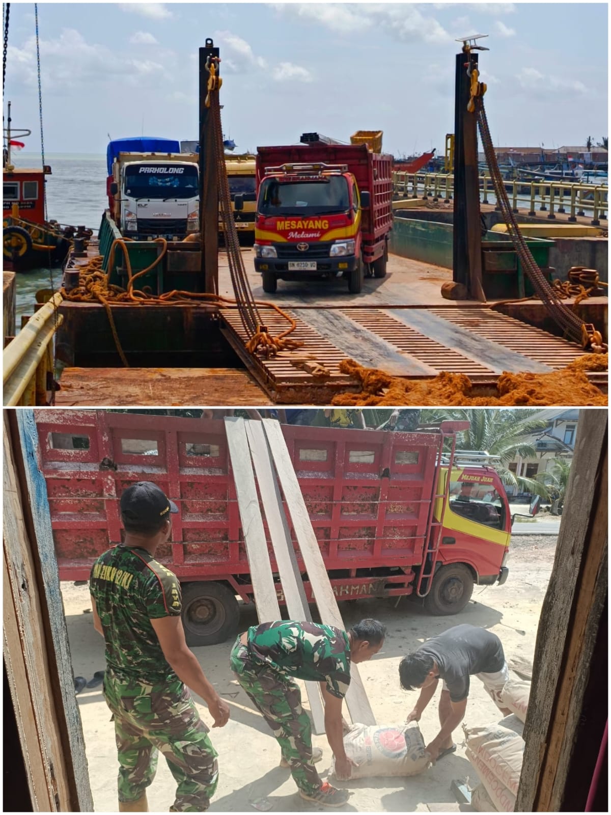 Demi mendukung pembukaan jalan, rehabilitasi Rumah Tidak Layak Huni (RTLH), serta pembangunan infrastruktur fisik lainnya, personel dan material bangunan harus diseberangkan melalui jalur laut menuju Pulau Lepar.senin (2/3/26)