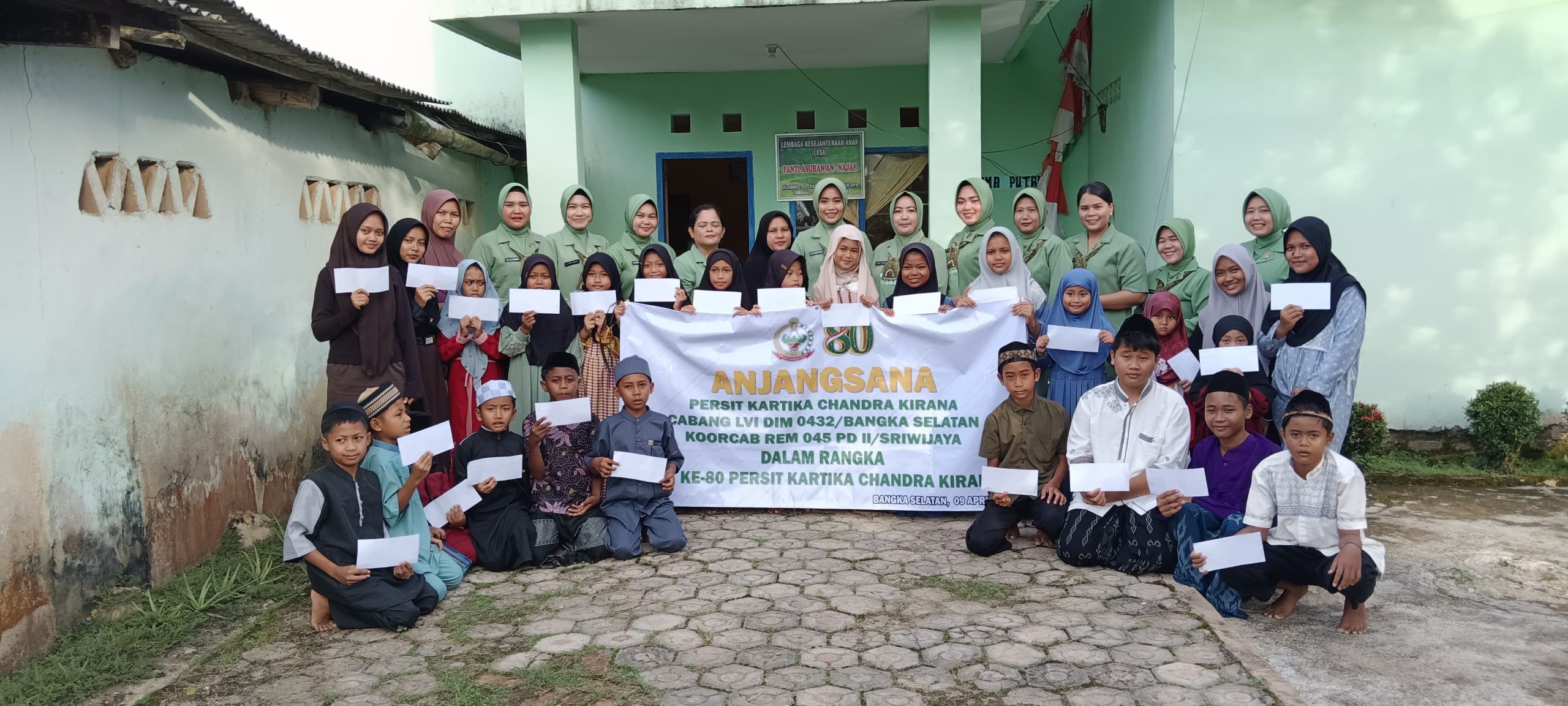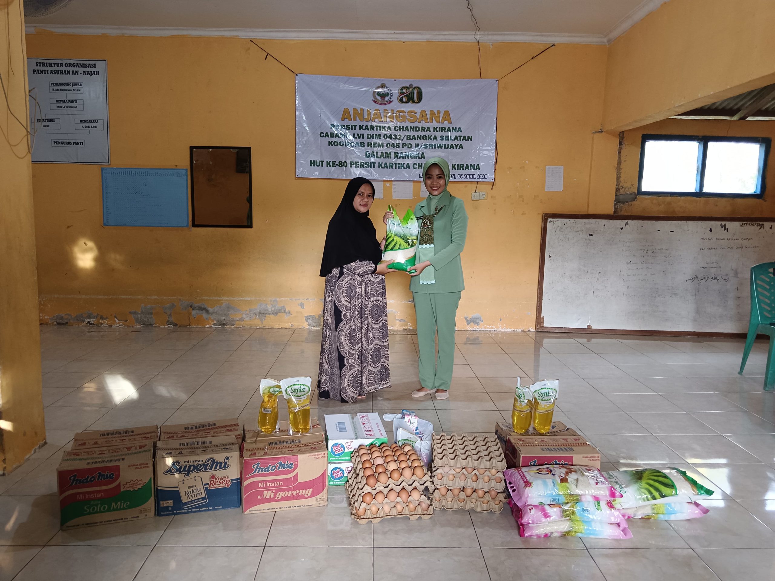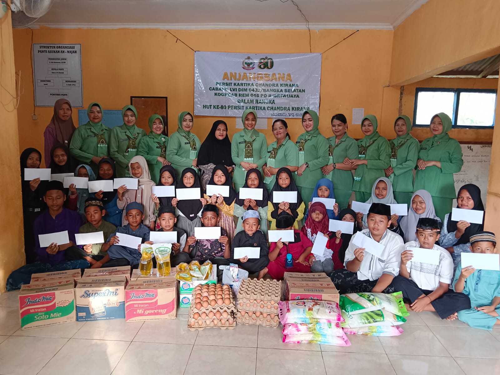 Toboali, Radarnyamuk.com , – Dalam rangka memperingati Hari Ulang Tahun (HUT) ke-80 Persit Kartika Chandra Kirana (KCK), Persit KCK Cabang LVI Kodim 0432/Bangka Selatan melaksanakan kegiatan anjangsana ke Panti Asuhan An-Najah yang berlokasi di Jalan Raya KM 10 Dusun SPB Rias, Desa Rias, Kecamatan Toboali, Kabupaten Bangka Selatan, Kamis (9/4/2026).