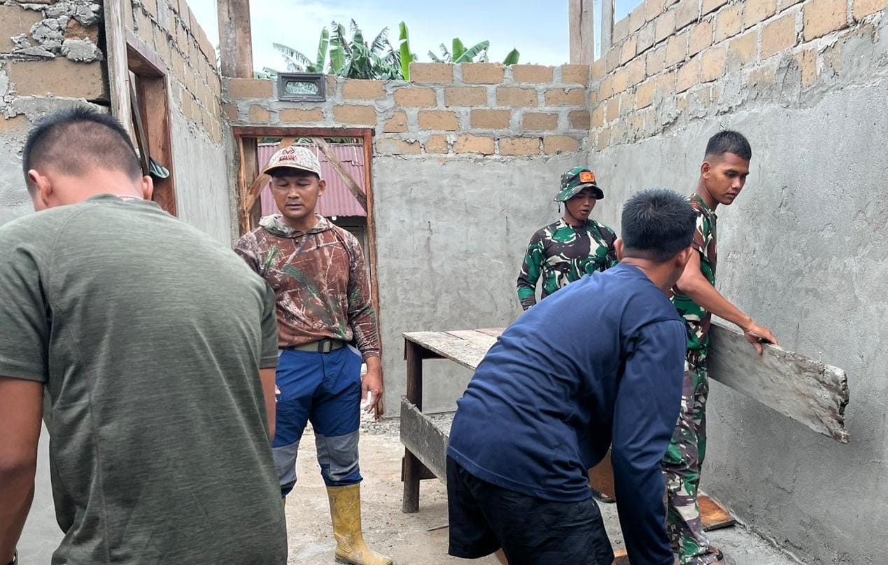 Kebersamaan antara anggota Satgas dan warga terlihat jelas di lapangan. Warga Desa Penutuk turut membantu proses pengerjaan, mulai dari mengangkat material hingga membersihkan area sekitar rumah.
