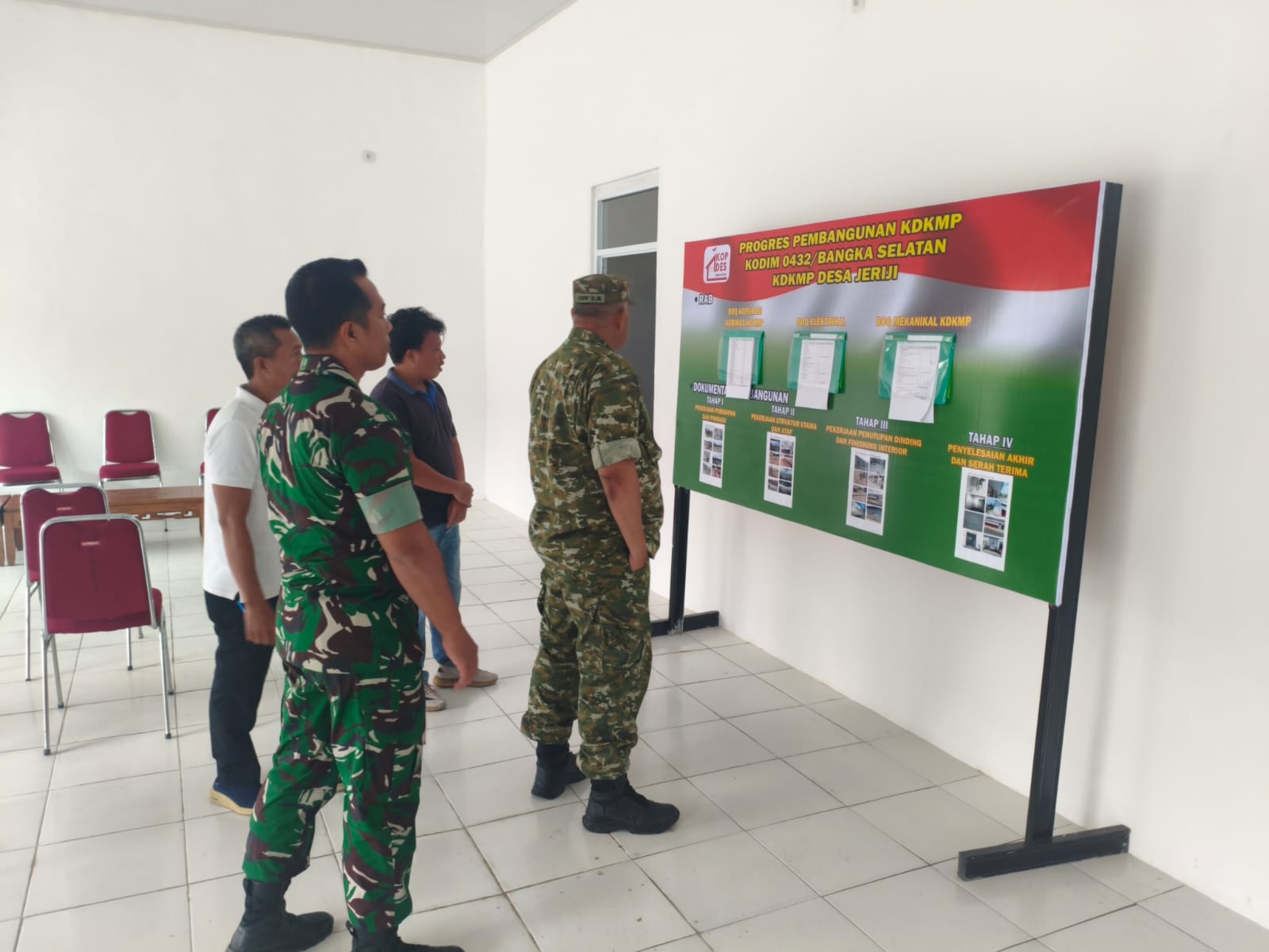 Usai kegiatan paparan, Tim Itjen TNI melaksanakan peninjauan langsung ke sejumlah lokasi pembangunan, di antaranya KDKMP Desa Bikang, workshop material di wilayah Toboali, KDKMP Desa Jeriji serta KDMP di Kecamatan Pulau Lepar
