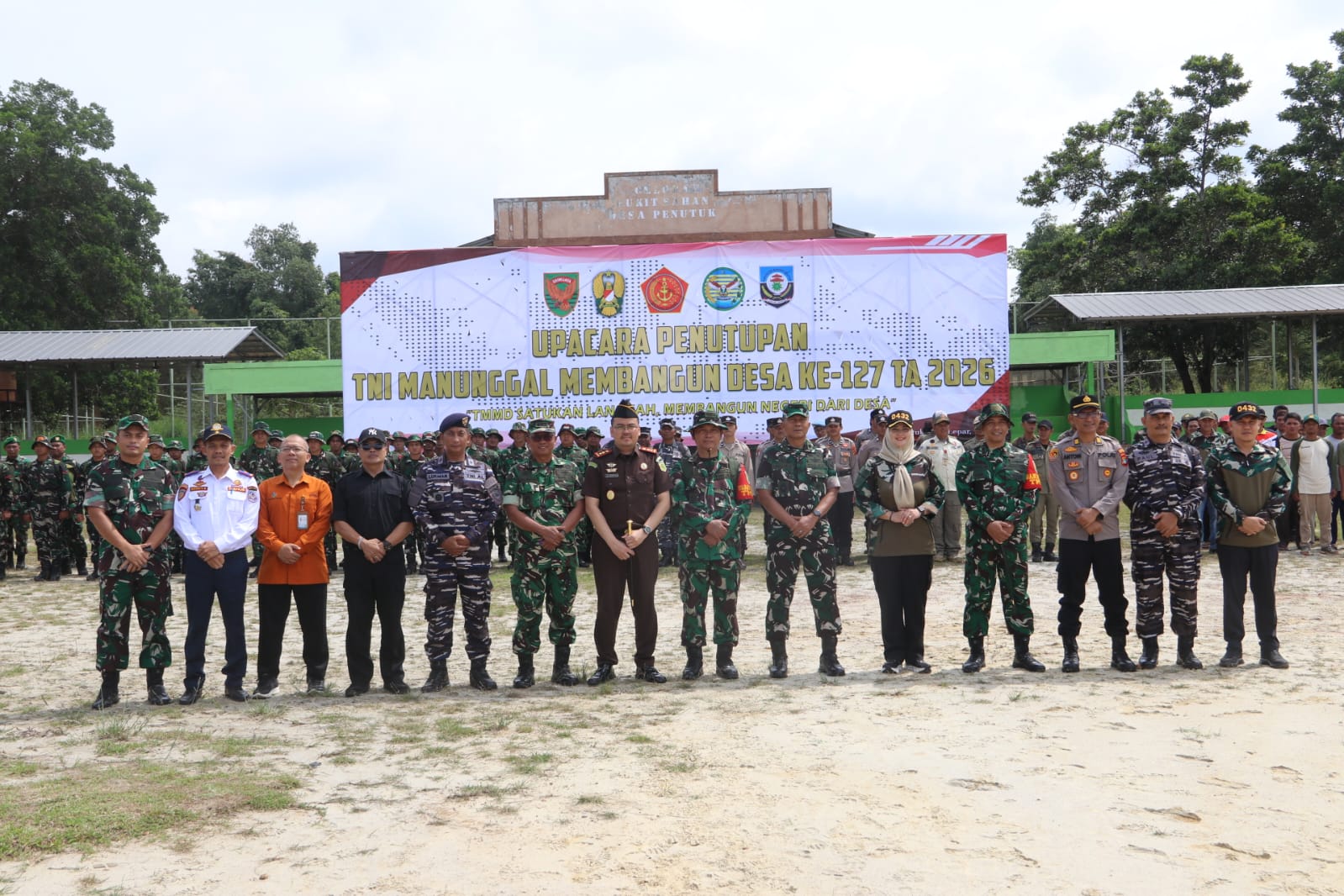 Pulau Lepar, Radarnyamuk.com , – Program TNI Manunggal Membangun Desa (TMMD) ke-127 Tahun Anggaran 2026 yang dilaksanakan oleh Kodim 0432/Bangka Selatan resmi ditutup melalui upacara penutupan yang berlangsung di Desa Penutuk, Kecamatan Lepar, Kabupaten Bangka Selatan, Rabu (11/3/2026).