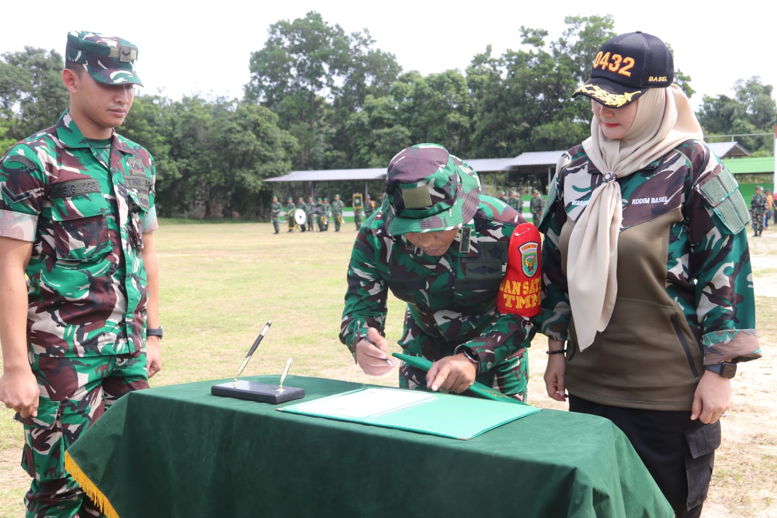 Upacara penutupan berlangsung khidmat dengan Komandan Upacara Kasdim 0432/Basel Mayor Arm Frengky Triwibowo dan Perwira Upacara Lettu Inf Risdam Simanjuntak. Rangkaian kegiatan dimulai dengan laporan perwira upacara, menyanyikan lagu Indonesia Raya, pemeriksaan pasukan, pembacaan laporan kesiapan pelaksanaan TMMD, penandatanganan naskah pekerjaan, hingga penyerahan alat kerja secara simbolis kepada perwakilan masyarakat.